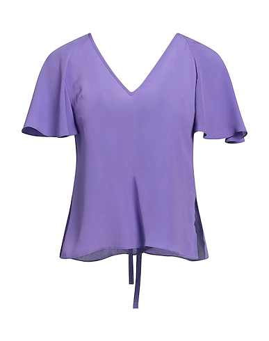 크레이프, 장식 부착 없음, 솔리드 컬러, v 네크라인, 쇼트 슬리브, 포켓 없음, 탑