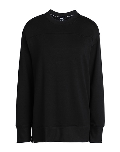 플리스, 브랜드 로고, 솔리드 컬러, 크루넥, 롱 슬리브, 리브 조직 커프스, 사이드 슬릿 헴라인, 스트레치, 라지 핏