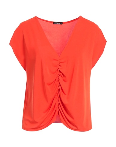 크레이프, 개더 디테일, 솔리드 컬러, 목 넥, 쇼트 슬리브, 포켓 없음, 스트레치, 탑