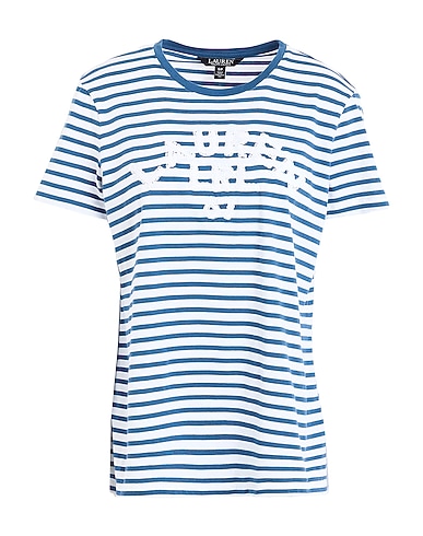저지, 브랜드 로고, 자수 장식, 스트라이프, 크루넥, 쇼트 슬리브, 세탁기 세탁 또는 드라이클리닝, 건조기 사용가능, 패턴 티셔츠