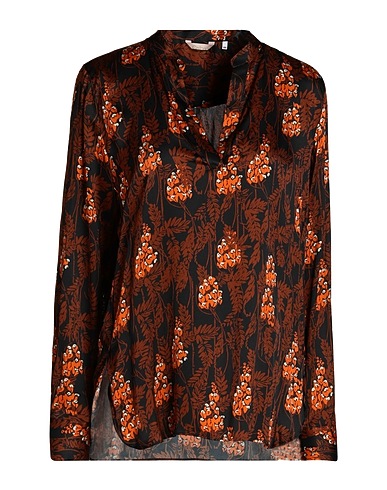 새틴, 장식 부착 없음, 플로럴 모티브, v 네크라인, 롱 슬리브, 버튼 커프스, 옆면 롱 슬릿, 스트레치, 드라이클리닝, 표백 금지, 건조기 사용불가, 탑, 이 브랜드는 사이즈가 작게 나옵니다