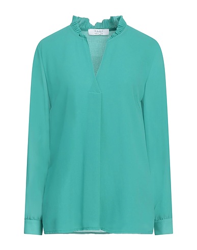 탑, 크레이프, 솔리드 컬러, 장식 부착 없음, 스탠드 칼라, 롱 슬리브, 세탁기 세탁 또는 드라이클리닝, 표백 금지, 건조기 사용불가