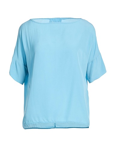 탑, 크레이프, 솔리드 컬러, 장식 부착 없음, 크루넥, 쇼트 슬리브, 세탁기로 세탁, 표백 금지, 건조기 사용불가