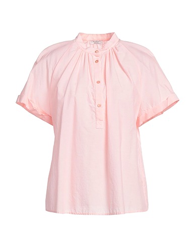 탑, 우븐, 스트라이프, 장식 부착 없음, 스탠드 칼라, 쇼트 슬리브, 버튼 여밈, 세탁기 세탁 또는 드라이클리닝, 표백 금지, 건조기 사용불가