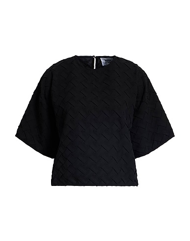 탑, 크레이프, 솔리드 컬러, 장식 부착 없음, 크루넥, 쇼트 슬리브, 1 버튼, 세탁기 세탁 또는 드라이클리닝, 표백 금지, 건조기 사용불가