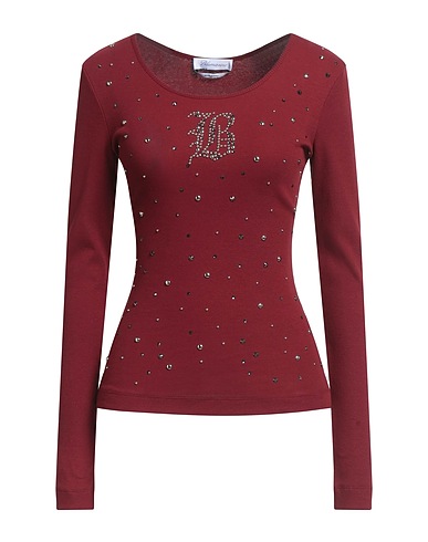 티셔츠, 저지, 리브(rib) 조직, 장식 디테일 솔리드 컬러, 스터드, 브랜드 로고, 크리스탈, 와이드 네크라인, 롱 슬리브, 스트레치, 손세탁, 표백 금지, 건조기 사용불가, 이 브랜드는 사이즈가 작게 나옵니다
