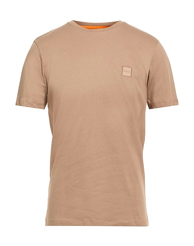 베이직 티, 저지, 솔리드 컬러, 브랜드 로고, 크루넥, 쇼트 슬리브, 세탁기로 세탁, 표백 금지, 건조기 사용불가
