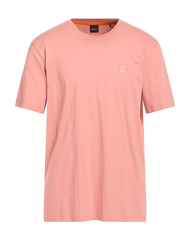 베이직 티, 저지, 솔리드 컬러, 브랜드 로고, 크루넥, 쇼트 슬리브, 세탁기로 세탁, 표백 금지, 건조기 사용불가