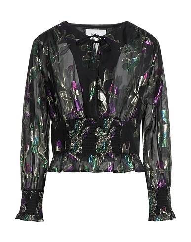 탑, 크레이프, 메탈릭 효과, 플로럴 모티브, 스모킹, 보우 타이 네크라인, 롱 슬리브, 드라이클리닝, 표백 금지, 건조기 사용불가