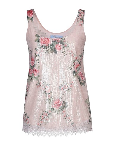 탑, 튤, 플로럴 모티브, 시퀸, 크루넥, 슬리브리스, 이 브랜드는 사이즈가 작게 나옵니다