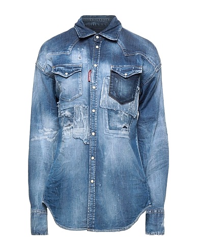 데님, 바랜 효과, 해진 효과, 장식 부착 없음, 투톤 패턴, 미디엄 워싱, 클래식 칼라, 롱 슬리브, 스냅버튼, 멀티 포켓, 스트레치