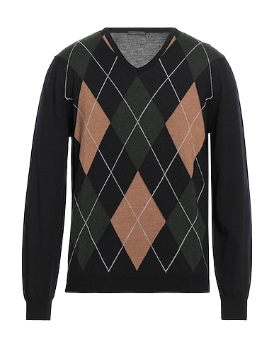 울, 라이트웨이트 니트, 장식 부착 없음, 멀티컬러 패턴, v 네크라인, 롱 슬리브, 리브 조직 커프스, 포켓 없음