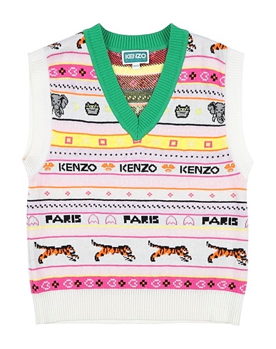 니트 소재, 라이트웨이트 니트, 브랜드 로고, 멀티컬러 패턴, v 네크라인, 슬리브리스, 포켓 없음, 건조기 사용불가, 표백 금지