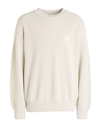 니트 소재, 미디엄웨이트 니트, 솔리드 컬러, 자수 로고 장식, 크루넥, 롱 슬리브, 세탁기 세탁 또는 드라이클리닝, 표백 금지, 건조기 사용불가