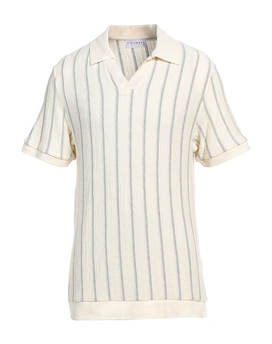 니트 소재, 라이트웨이트 니트, 스트레치 패브릭, 브랜드 로고, 스트라이프, v 네크라인, 쇼트 슬리브, 세탁기로 세탁, 표백 금지, 건조기 사용불가