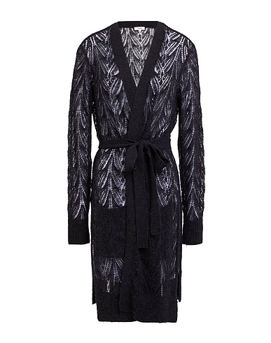 크로셰 니트, 솔리드 컬러, 벨트, 롱 슬리브, 패치 포켓, 옆면 롱 슬릿, 손세탁, 표백 금지, 건조기 사용불가