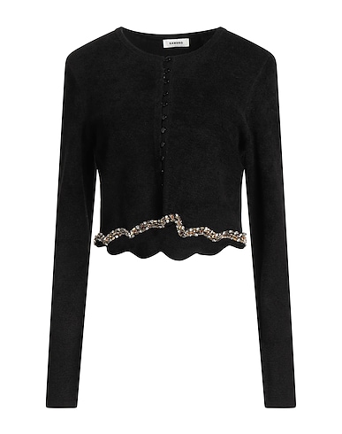니트 소재, 라이트웨이트 니트, 크롭트, 크리스탈, 장식 디테일 솔리드 컬러, 롱 슬리브, 버튼 여밈, 손세탁 또는 드라이클리닝, 표백 금지, 건조기 사용불가
