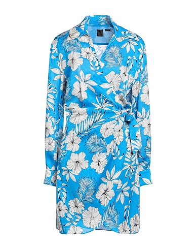랩 드레스, 크레이프, 로고 디자인, 플로럴 모티브, 장식 부착 없음, 딥 네크라인, 롱 슬리브, 버튼 커프스, 부분적으로 안감 처리한 내부, 타이 여밈, 포켓 없음