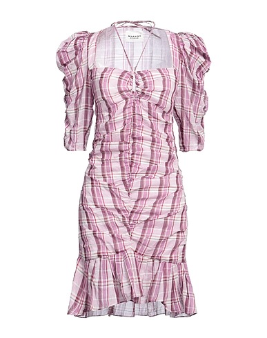 바디콘 드레스, 우븐, 개더 디테일, 타탄체크, 스퀘어 네크라인, 3/4길이 슬리브, 슬립 내장, 지퍼 여밈, 포켓 없음