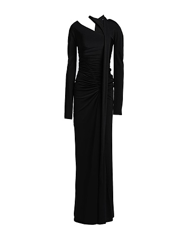 이브닝 드레스, 합성 저지, 스트레치 패브릭, 솔리드 컬러, 드레이프, 크루넥, 롱 슬리브, 안감있음, 1 버튼, 포켓 없음, 스타일과 우아함 그리고 화려함이 어우러진 멋진 파티 룩을 연출해줄 피스