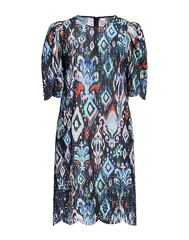 평직, 장식 부착 없음, 멀티컬러 패턴, 크루넥, 쇼트 슬리브, 안감없음, 지퍼 클로저, 멀티 포켓, 원피스 & 드레스