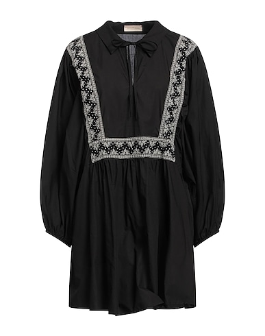 평직, 자수, 레이스업, 투톤 패턴, v 네크라인, 롱 슬리브, 벨 슬리브, 안감없음, 포켓 없음, 트라페즈 스커트, 라지 핏
