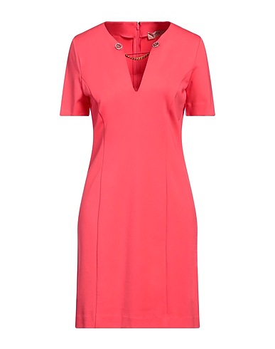 저지, 브랜드 로고, 솔리드 컬러, v 네크라인, 쇼트 슬리브, 안감없음, 지퍼 여밈, 포켓 없음, 스트레치, 드라이클리닝, 표백 금지, 건조기 사용불가, 바디콘 드레스