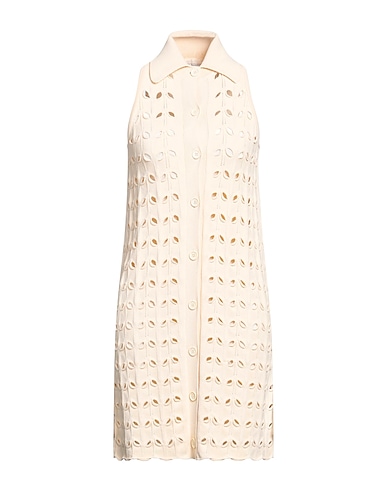 니트 소재, 퍼포레이트, 라이트웨이트 니트, 장식 부착 없음, 솔리드 컬러, 클래식 칼라, 슬리브리스, 안감없음, 버튼 여밈, 바디콘 드레스