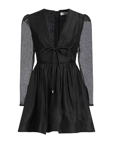 플레어 드레스, 우븐, 솔리드 컬러, 개더 디테일, 딥 네크라인, 롱 슬리브, 지퍼 커프스, 안감있음, 지퍼 여밈, 드라이클리닝, 표백 금지, 건조기 사용불가