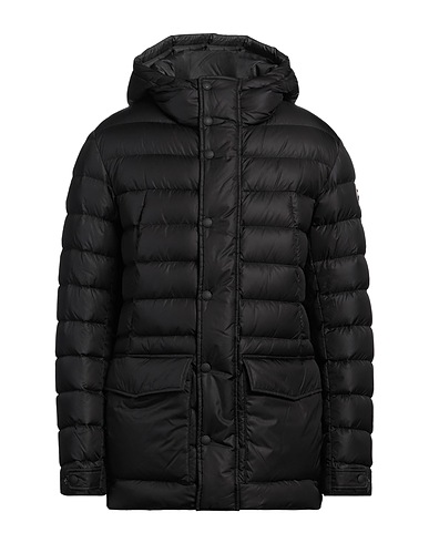 쇼트 다운 자켓, 테크니컬 패브릭, 퀼팅, 브랜드 로고, 솔리드 컬러, 후드, 싱글브레스티드, 롱 슬리브, 덕 다운 내장, 지퍼 여밈, 스냅버튼 여밈, 멀티 포켓, 동물성 비섬유 자재 함유, 세탁기로 세탁, 표백 금지, 건조기 사용가능, 다림질 금지