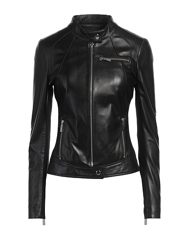 바이커 자켓, 가죽, 저지, 솔리드 컬러, 장식 부착 없음, 스탠드 칼라, 롱 슬리브, 안감있음, 지퍼 여밈, 스냅버튼 여밈, 멀티 포켓, 동물성 비섬유 자재 함유, 전문 세탁 또는 드라이클리닝, 표백 금지, 건조기 사용불가