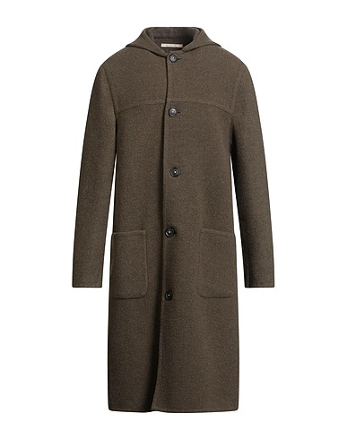 싱글 브레스티드 코트, 울, 펠트, 솔리드 컬러, 장식 부착 없음, 후드, 롱 슬리브, 안감없음, 버튼 여밈, 패치 포켓, 드라이클리닝, 표백 금지, 건조기 사용불가