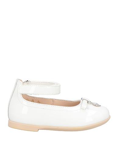 발레리나 플랫, 가죽, 페이턴트 효과, 솔리드 컬러, 브랜드 로고, 보우 디테일, 가죽 소재의 내부, 벨크로 여밈, 라운드 토, 힐 없음, 고무 밑창, 동물성 비섬유 자재 함유