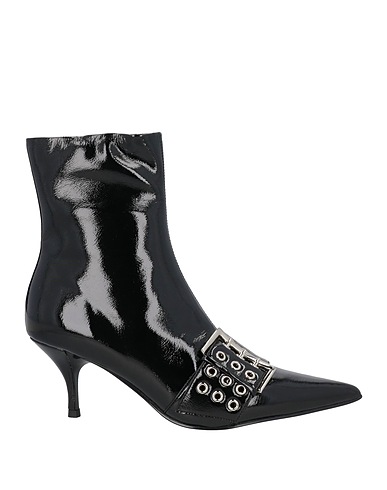 인조가죽, 바니쉬 처리, 메탈 디테일, 장식 디테일 솔리드 컬러, 안감있음, 지퍼 클로저, 포인티드/테이퍼드 토, 핀 힐, 고무 밑창, 앵클 부츠