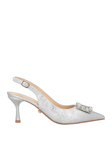 인조가죽, 라미네이트 효과, 크리스탈, 장식 디테일 솔리드 컬러, 내부 패브릭, 버클 잠금, 포인티드/테이퍼드 토, 스풀 힐, 플라스틱 힐, 고무 밑창, 슬링백 펌프스