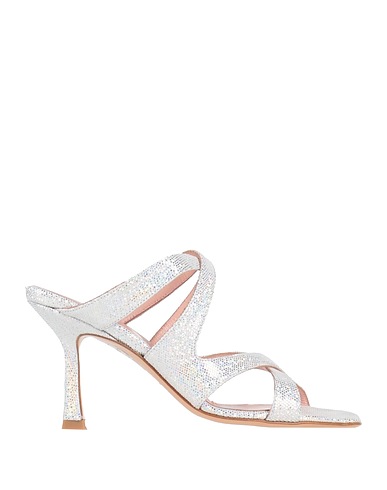 주트 솔, 메탈릭 효과, 장식 부착 없음, 솔리드 컬러, 가죽 소재의 내부, 스퀘어 토, 스풀 힐, 가죽 밑창, 동물성 비섬유 자재 함유, 라지 핏, 샌들