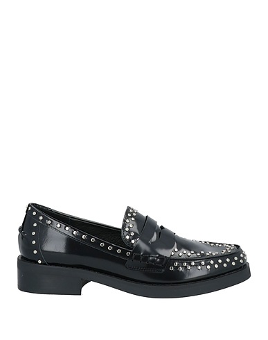유광 가죽, 스터드, 장식 디테일 솔리드 컬러, 가죽 소재의 내부, 라운드 토, 스퀘어 힐, 고무 밑창, 동물성 비섬유 자재 함유, 페니 로퍼