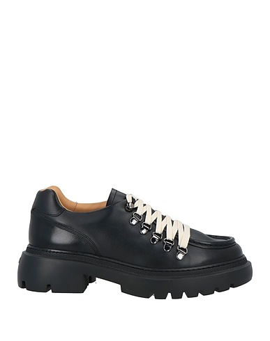 가죽, 브랜드 로고, 솔리드 컬러, 가죽 소재의 내부, 라운드 토, 스퀘어 힐, 고무 힐, 미끄럼방지 고무 밑창, 동물성 비섬유 자재 함유, 청키 레이스업 슈즈