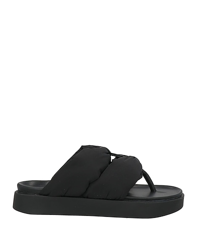 통 샌들, 테크니컬 패브릭, 솔리드 컬러, 가죽 인서트, 라운드 토, 가죽 소재의 내부, 고무 밑창, 동물성 비섬유 자재 함유