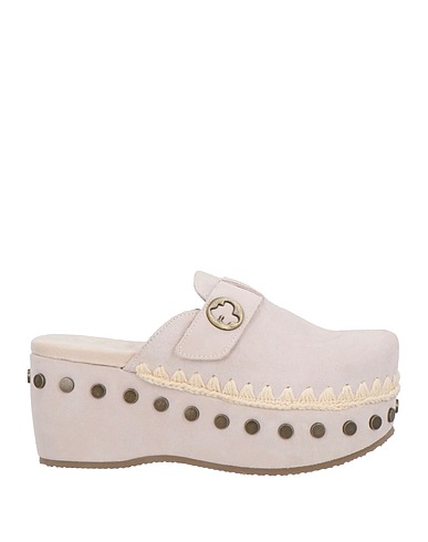 뮬, 주트 솔, 장식 디테일 솔리드 컬러, 자수 장식, 브랜드 로고, 내부 패브릭, 라운드 토, 웨지 힐, 미끄럼방지 고무 밑창, 동물성 비섬유 자재 함유