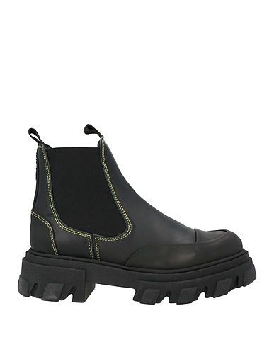 청키 부츠, 가죽, 고무, 솔리드 컬러, 브랜드 로고, 파이핑 트림, 가죽 소재의 내부, 엘라스틱 인서트, 라운드 토, 스퀘어 힐, 고무 힐, 고무 밑창, 동물성 비섬유 자재 함유, 스몰 핏