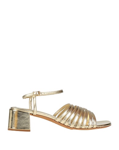 앵클 스트랩 샌들, 가죽, 메탈릭 효과, 솔리드 컬러, 장식 부착 없음, 가죽 소재의 내부, 라운드 토, 스퀘어 힐, 커버드 힐, 가죽 밑창, 동물성 비섬유 자재 함유