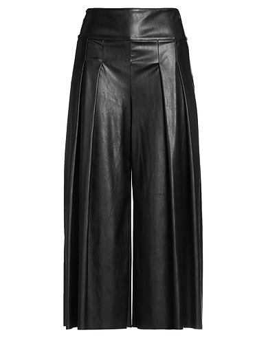 인조가죽, 장식 부착 없음, 솔리드 컬러, 하이 웨이스트, 와이드 레그, 컴포트 핏, 지퍼 클로저, 멀티 포켓, 기타 바지