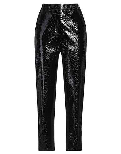 인조가죽, 장식 부착 없음, 크로커다일 프린트, 솔리드 컬러, 하이 웨이스트, 엘라스틱 웨이스트라인, 레귤러 핏, 지퍼 여밈, 1 버튼, 멀티 포켓, 손세탁, 표백 금지, 건조기 사용불가, 다림질 금지, 테이퍼드 팬츠