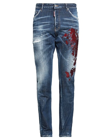 테이퍼드 진, 데님, 디스트레스드 효과, 바랜 효과, 장식 디테일 솔리드 컬러, 크리스탈, 가죽 인서트, 브랜드 로고, 미디엄 워싱, 하이 웨이스트, 레귤러 핏, 버튼 여밈, 포켓, 손세탁 또는 드라이클리닝, 표백 금지, 건조기 사용불가, 동물성 비섬유 자재 함유