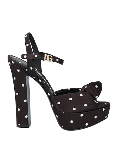 앵클 스트랩 샌들, 새틴, 폴카도트, 브랜드 로고, 플랫폼 힐, 가죽 소재의 내부, 앵클 버클 스트랩, 라운드 토, 스퀘어 힐, 가죽 밑창, 동물성 비섬유 자재 함유