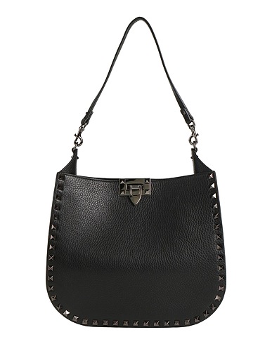 토트백, 페블 효과 가죽, 건메탈 톤, 솔리드 컬러, 장식 효과, 브랜드 로고, 클래스프(clasp) 클로져, 가죽 소재의 내부, 분리 가능한 핸들, 탈착가능 숄더 스트랩, 미디엄 스타일, 동물성 비섬유 자재 함유