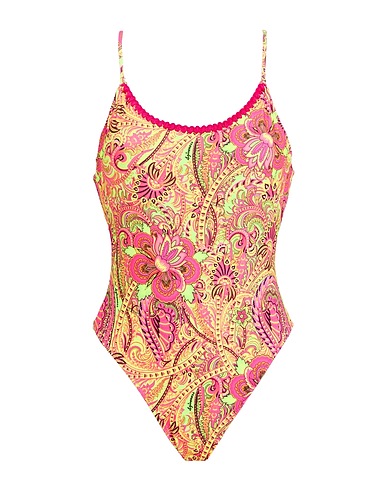 스윔수트, 합성 저지, 스트레치 패브릭, 플로럴 모티브, 브랜드 로고, 안감있음, 포켓 없음, 손세탁, 표백 금지, 건조기 사용불가, 다림질 금지