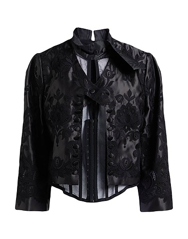 오간자, 자수, 솔리드 컬러, 포켓 없음, 버튼 여밈, v 네크라인, 싱글브레스티드, 3/4길이 슬리브, 안감있음