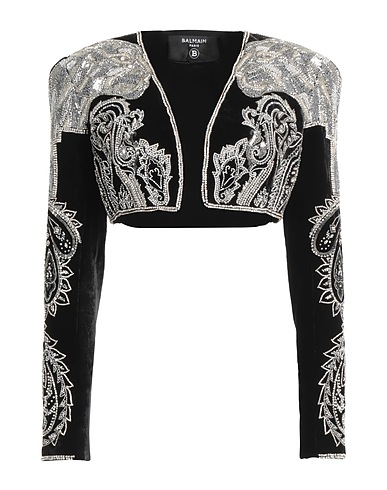 볼레로, 벨벳, 비즈, 크리스탈, 시퀸, 장식 디테일 솔리드 컬러, 딥 네크라인, 롱 슬리브, 어깨 패드, 스냅버튼 커프스, 안감있음, 물세탁 불가, 표백 금지, 건조기 사용불가, 다림질 금지, 이 브랜드는 사이즈가 작게 나옵니다, 스타일과 우아함 그리고 화려함이 어우러진 멋진 파티 룩을 연출해줄 피스